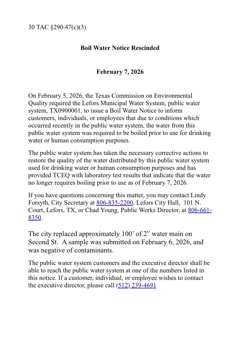 In the City of Lefors, we are defined less by boundaries on a map than by the sense of shared values our residents hold dear. Small town values, guided growth, preservation of historical, cultural, and natural heritage are just a few of the core principles that makes City of Lefors a wonderful place to call home.